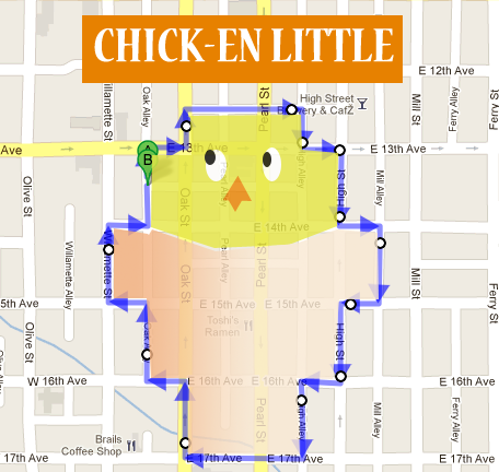 “The sky is falling, the sky is falling,” Chicken Little once said. Then it seems appropriate that we meet at the new Falling Sky Brewery (13th and Oak Alley) on Thursday, February 23rd at 7:45pm, for a new, hatching shape: The Chick-en Little. Are you chicken? Come on, you know you want to be a biker chick!