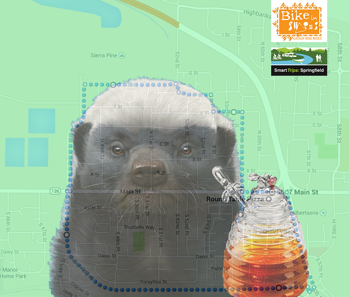 …the Honey Badger and together with SmartTrips: Springfield & Bike in Shapes, we’re going to ride its shape! Join us for a bonus summer ride, Thursday, July 16th at 6:30pm the Roundtable Pizza in Springfield (5547 Main Street, Springfield, OR 97478). SmartTrips: Springfield has community events all summer, check ‘em out!